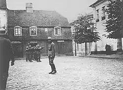 Durante a Primeira Guerra Mundial, no final de agosto de 1914, Konin foi ocupada pelo exército alemão.[12] Em 11 de novembro de 1918, houve um tiroteio na praça Wolności, em Konin. Naquele dia, o prédio da escola comercial, localizado no condomínio Zemełka, foi tomado pelos prisioneiros de guerra. A notícia reuniu uma multidão de estudantes do lado de fora do prédio. Naquela época, os soldados, prisioneiros de guerra, foram até o prédio do starosta pedindo por armas e munições. Um oficial alemão ligou para o quartel-general solicitando a intervenção militar. Os soldados alemães chegaram e encontrando a multidão na praça, abriram fogo contra ela. Cinco pessoas morreram no local e mais duas no hospital. O funeral das vítimas se transformou em uma grande manifestação de sentimentos patrióticos. Em 1984, uma placa comemorativa das vítimas foi colocada na fachada de um edifício na praça.[13] Em 12 de novembro de 1918, as forças de ocupação deixaram a cidade.[12].