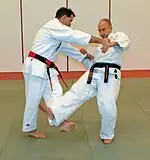 ![]() Judoka a demonstrar a técnica de Kosoto-gari | |