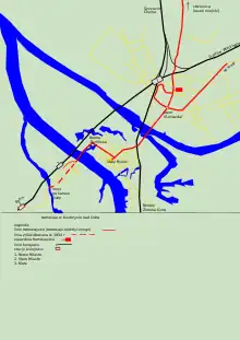 ![]() Kostrzyn nad Odrą. Em primeiro plano (parte inferior da foto), as ruínas da Cidade Velha e a Fortaleza de Kostrzyn | ||||