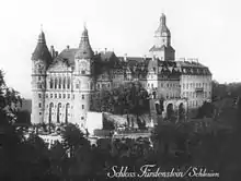 Durante a Segunda Guerra Mundial, o castelo foi tomado pelo regime nazista em 1944, depois que o conde Hans Heinrich XVII de Hochberg, príncipe de Pless (Pszczyna), se mudou para a Inglaterra em 1932 e se tornou um cidadão britânico;[3] além disso, seu irmão, conde Alexandre de Hochberg, cidadão polonês e proprietário do Castelo de Pszczyna, se juntara ao exército polonês.[3] Supervisionado pelo pessoal da SS e da Organização Todt, o complexo de edifícios em Książ tornou-se parte do vasto complexo subterrâneo do Projeto Riese, presumivelmente um quartel-general do Führer e uma futura morada para Adolf Hitler.[6][4][3] As obras foram realizadas em condições desumanas por trabalhadores forçados e reclusos do campo de concentração de Gross-Rosen, até que o castelo foi ocupado pelas forças do Exército Vermelho após a ofensiva no Vistula–Oder em 1945. Um memorial marca o local do subcampo de Fürstenstein. Grandes partes da estrutura histórica do edifício foram demolidas durante a construção; numerosos artefatos foram roubados ou destruídos durante a ocupação soviética.