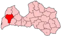 O distrito está situado na parte ocidental da Letônia ao longo das duas margens do rio Venta. Faz divisa com os seguintes distritos: Ventspils, Talsi, Tukums, Saldus e Liepāja. Os limites atuais do distrito foram estabelecidas em 1950.