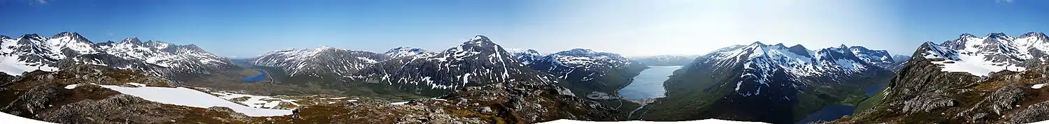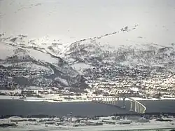 ![]() Kvaløya com a Ponte Sandnessund para a ilha vizinha de Tromsøya | |
