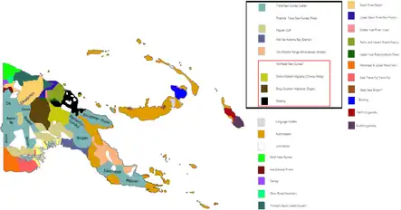 | Família: | Austronésia[2] Malaio-Polinésia Malaio-Polinésia Centro-Oriental Malaio-Polinésia-Oriental Oceânica Oceânico-Ocidental Norte-Nova Guiné Golfo de Huon Norte-Golfo de Huon Bukawa | |