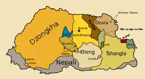 No início do séc. XIX, o fotógrafo John Claude White ao visitar a região central do atual Butão, notou que as pessoas falavam uma língua diferente do tibetano: