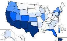 Além disso, na Austrália e na Nova Zelândia, há comunidades de nativos espanhóis, resultantes da emigração de países de língua espanhola (principalmente do Cone Sul), que somam 133 000 falantes.[nota 4] No Havaí, 2,1% da população são falantes nativos de espanhol.[96] Em 2010, havia 120 842 hispânicos, segundo o Censo dos Estados Unidos.