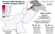 Há hoje um movimento linguístico nascente,[3] e, nas últimas décadas, intelectuais falantes de hindko começaram a promover a visão de hindko como uma língua independente.[4] Há uma tradição literária baseada em Pexauar, que é a base de "um padrão literário incipiente para as diferentes varidades da Província da Fronteira Noroeste, sendo a varidade urbana de Pexauar no noroeste, e outra baseada na língua de Abbottabad no nordeste". No censo de 2017 do Paquistão, 5,066 milhões de pessoas declararam que seu idioma é o hindko.[1]