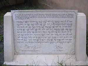 Esta escrita possui uma particularidade que consiste na introdução, no princípio ou no interior de algumas palavras, de letras comparáveis às maiúsculas dos alfabetos latinos e que se destinam unicamente a conferir a estas palavras um carácter honorífico e respeitável.