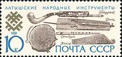 Selo postal da URSS representando instrumentos letões tradicionais.