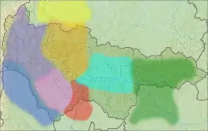 Dialetos individuais são conhecidos de acordo com os rios nas proximidades dos quais seus falantes vivem (d): [4]