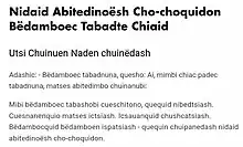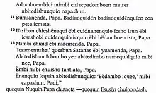 Abaixo, um pequeno trecho da Declaração dos Direitos Humanos em matsé e tabelas exemplificando o vocabulário da língua.