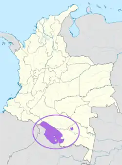 ![]() Regiões onde a língua murui huitoto é falada. | ||