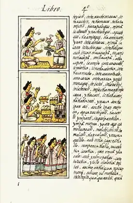 Como parte de seus esforços missionários, membros de diversas ordens monásticas (principalmente franciscanos, dominicanos e jesuítas) introduziram o alfabeto latino aos náuatles, que estavam ansiosos por ler e escrever, tanto em espanhol quanto em seu próprio idioma. Apenas vinte anos depois da chegada dos espanhóis, já havia textos preparados na língua náuatle utilizando-se dos caracteres latinos.[25] Também neste período foram fundadas instituições de aprendizado, como o Colégio da Santa Cruz de Tlatelolco, inaugurado em 1536, que ensinava tanto os idiomas indígenas quanto as línguas europeias clássicas para índios e padres. Gramáticos missionários se encarregavam do preparo das gramáticas dos idiomas indígenas para o uso dos padres. A primeira gramática náuatle, escrita por Andrés de Olmos, foi publicada em 1547, três anos antes da primeira gramática francesa. Em 1645 outras quatro haviam sido publicadas: uma por Alonso de Molina em 1571, uma por Antonio del Rincón em 1595, uma por Diego de Guzmán em 1642 e, em 1645, aquela que é considerada hoje em dia a mais importante gramática náuatle, de Horacio Carochi.[26]