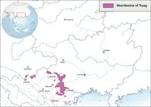 O nome Nùng, age como termo geral para as várias semelhantes falas Kra–Dai dos Nùng e outros dialetos não relacionados, utilizados nas áreas de fronteira entre a China e o Vietnã.[2]