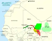 ![]() Localização das línguas songai. O tadaksahak é falado na região verde entre o Mali e o Niger | ||