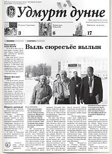 O udmurte (удмурт кыл, udmurt kyl) é uma língua fino-permiana falada pelos udmurtes, habitantes da república russa da Udmúrtia, onde tem condição co-oficial, juntamente do russo. Segundo o censo russo de 2020, é falada por 270.000 pessoas.[2]