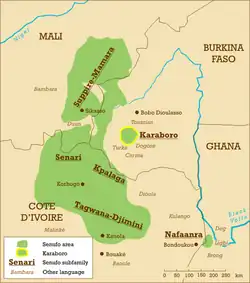 | Família: | Atlântico-congolesa Senufô Central Caraboros | |