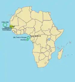 No decorrer dos séculos XV e XVI ao longo da costa do Senegal, Gâmbia e da Guiné a chegada de muitos comerciantes oriundos de Portugal e de mestiços contribuíram para a difusão do português nessas regiões.[1] Atualmente o portuguesa é a língua oficial de Cabo Verde e da Guiné-Bissau.