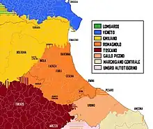 Mapa linguístico do dialeto romagnol.