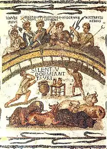 As certidões de nascimento e testamentos dos cidadãos romanos eram obrigatoriamente escritos em latim até ao reinado de Alexandre Severo (r. 222–235).[31] Os romanos analfabetos recorriam a alguém, como escribas do governo (scriba), para ler ou escrever os seus documentos oficiais.[32][33] As leis e éditos eram publicados por escrito e também eram anunciados oralmente.[34][nt 1] A arte pública e as cerimónias religiosas eram formas de comunicar a ideologia imperial, independentemente da língua falada ou da capacidade de leitura.[35] Os artistas gregos levaram para Roma uma forma primitiva de dança narrativa (pantomimo) que se tornou popular por todo o império multilíngue, em parte porque se baseava mais em gestos do que na expressão verbal.[36]