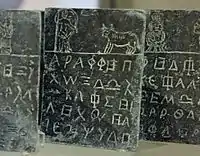 O púnico foi usado em legendas de moedas durante o reinado de Tibério (r. 14–37 d.C.) e aparecem inscrições em púnico em edifícios públicos até ao século II, algumas delas bilíngues com latim.[119] Havia também inscrições trilíngues — uma delas, relacionada com o culto imperial, apresenta "o latim oficial, o púnico local e o grego dos mercadores de passagem e de uma elite educada e cosmopolita".[131]