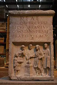 A forma de ritual privado ou personalizado caracterizado como "magia"[nt 9] podia ser conduzida numa mistura de línguas. A magia e mesmo algumas terapias para doenças quase sempre envolviam encantamentos ou recitação de feitiços (carmina), frequentemente acompanhados pela criação ritualizada de tábuas com inscrições (lamellae) ou amuletos. Estes objetos e usos são conhecidos tanto pela arqueologia como por textos escritos como os "Papiros Mágicos Gregos" (em latim: Papyri Graecae Magicae, sigla: PGM), uma coleção de feitiços escritos entre os séculos II a.C. e o V d.C. Embora Augusto tenha tentado acabar com a magia queimando 2 000 livros esotéricos no início do seu reinado,[159] as práticas mágicas estavam amplamente disseminadas por todo o mundo greco-romano e atestam uma perceção de multilinguismo entre os povos do império.[160] Os feitiços não eram traduzidos porque se pensavam que a sua eficácia residia no seu palavreado preciso;[161] línguas como o gaulês podem assim ter persistido para fins rituais privados quando já não eram usadas no dia a dia.[162]