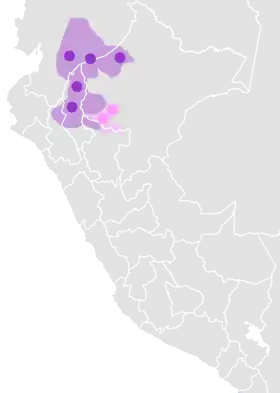Essas línguas jivaroanas são faladas na Amazônia (Peru e Equador), Cajamarca, Loreto (região) e em San Martín (província) no Peru e em províncias do leste do Equador.