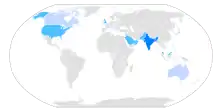 - Inglês – língua franca moderna e majoritária ou oficial em 58 países e 31 territórios não-soberanos, especialmente estes dentro da Commonwealth of Nations.