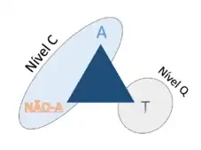 É possível representar os três termos da Lógica do Terceiro Incluído (A, não-A e T) e seus dinamismos associados por meio de um triângulo no qual um dos vértices se situa, por exemplo, em um nível de Realidade Quântico e os outros dois vértices em um outro nível de Realidade Clássico. Se somente o nível de Realidade Clássico for tomado como “verdade”, toda a manifestação de dualidade aparecerá como uma “luta” entre dois elementos contraditórios, como, por exemplo, uma onda A e uma partícula não-A, não podendo existir uma onda-partícula, ou seja, um estado A e não-A. O terceiro dinamismo, o do estado T, é exercido no nível de Realidade Quântico, no qual uma Onda-Partícula é admissível. Neste nível, aquilo que parecia Classicamente contraditório (onda e partícula) está, de fato, formando uma unidade no nível do quantum, ou seja, e o que aparece como contraditório é percebido como não-contraditório[1][3].