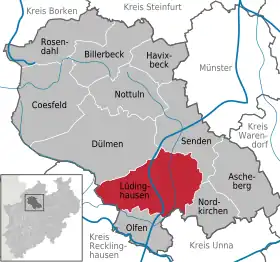 | Localização de Lüdinghausen no distrito de Coesfeld | |