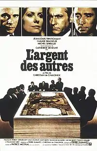 L'Argent des autres é um filme dramático francês de 1978 dirigido por Christian de Chalonge e estrelado por Jean-Louis Trintignant, Catherine Deneuve, Claude Brasseur e Michel Serrault. O filme venceu o Prêmio Louis-Delluc e o César de melhor filme e melhor diretor.[2][3]