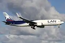 Um Boeing 767-300ERF da LANCO com a antiga pintura no Aeroporto Schiphol de Amsterdã em 2012