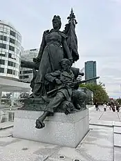 Seu nome vem do monumento La Défense de Paris criado como homenagem aos soldados que defenderam a cidade durante a Guerra franco-prussiana de 1870. Trata-se uma escultura de Louis-Ernest Barrias esculpida em bronze e inaugurada em 1883 sobre o que era a rotunda de Courbevoie e sempre visível sobre Le Parvis.