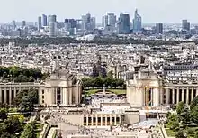 La Défense (A Defesa) é o maior centro financeiro da cidade de Paris. Com uma população de 20.000 habitantes aproximadamente, é centrado em um circuito oval de autoestradas no departamento de Altos do Sena, nas comunas de Nanterre, Courbevoie e Puteaux. O distrito está na extremidade ocidental de Paris, ao longo do Eixo Histórico, que começa no Louvre, no centro de Paris, e continua ao longo da Champs-Élysées, através do Arco do Triunfo, até culminar em La Défense.