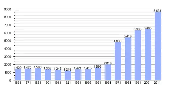 | Variação demográfica do município entre 1861 e 2011[3] |