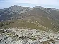 La Mujer Muerta vista desde as imediações da cimeira de Peñalara. Desde esse lugar não se aprecia a famosa silhueta que dá nome a este ramal da serra de Guadarrama.