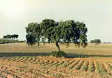 O ecossistema mais representativo da zona é o bosque esclerófilo mediterrânico (árvores de folhas duras e persistentes), predominando o carvalho na maior parte do espaço, acompanhada do sobreiro em zonas mais restringidas, por ser mais exigente em umidade. Aparece também outra quercínea (família com que se denomina a este gênero de árvores), o quejigo, espécie bastante rara na Estremadura. O estrato arbóreo se encontra, como que um tapete, em seus níveis mais puros por um denso soto-bosque, formando o matorral mediterráneo, muito diverso em espécies: madronho, durillo, labiérnago, lentisco, cornicabra, mirto, coscoja, torvisco, etc. Extensas áreas serranas do centro e norte da comarca tem sido repovoadas com pinheiros, piñoneros e eucaliptos, cujo cultivo florestal está praticamente abandonado na atualidade, ante sua escassa ou nula rentabilidade econômica. Também as margens das albufeiras têm sido extensamente repovoadas com eucaliptos, pinheiros e, mais escassamente, choupos, com o fim não tanto de exploração da madeira, mas mais para a retenção do solo e dos materiais - que por problemas na superfície podem ser arrastados desde os terrenos que caem diretamente ao vaso da represa, ocasionando um progressivo assoreamento do mesmo.[10]