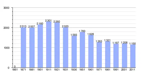 | Variação demográfica do município entre 1861 e 2011[3] |