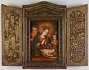 Uma técnica do século XVII que envolvende a aplicação de camadas de laca em papel moldado.[46]
