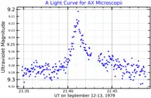 No passado Lacaille 8760 foi classificada em qualquer lugar da classe espectral K7 até M2. Em 1979, o astrônomo irlandês Patrick Byrne descobriu que ela é uma estrela de brilho variável,[1] e foi dada a designação de estrela variável de AX Microscopii. Como uma estrela de brilho variável é relativamente tranquila, apenas uma erupção, em média, menos de uma vez por dia.