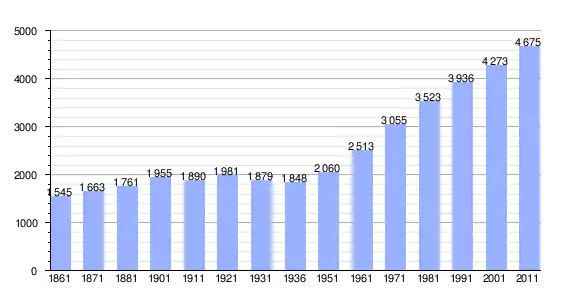 | Variação demográfica do município entre 1861 e 2011[3] |