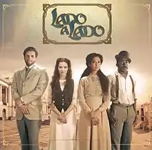A capa da trilha sonora da telenovela Lado a Lado mostra os atores Thiago Fragoso, Marjorie Estiano, Camila Pitanga e Lázaro Ramos, caracterizados como seus respectivos personagens, Edgar, Laura, Isabel, e Zé Maria.[2]