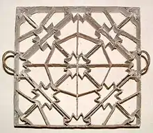 - Esse molde é ajustado a um quadro exterior de ferro que segue a forma da borda do ladrilho.