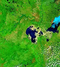 O lago tem uma área total de 1436 km2, incluindo 21 km2 de ilhas no lago, e fica a uma altitude de 213 m.[1]