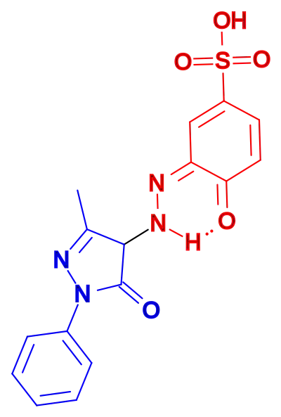 É obtido pela diazotação do ácido 3-amino-4-hidroxibenzenossulfônico (na imagem, em vermelho) e copulação com 3-metil-1-fenil-1H-pirazol-5(4H)-ona (em azul).[1]