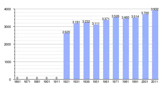 | Variação demográfica do município entre 1861 e 2011[3] |