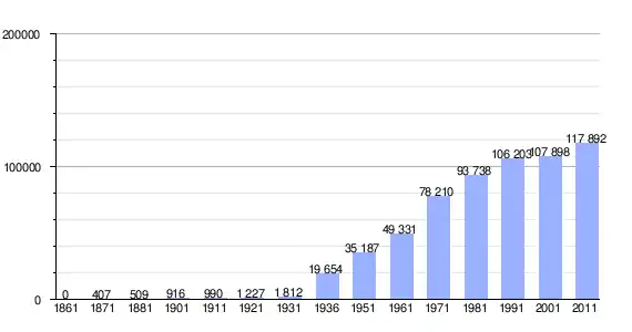 | Variação demográfica do município entre 1861 e 2011[3] |