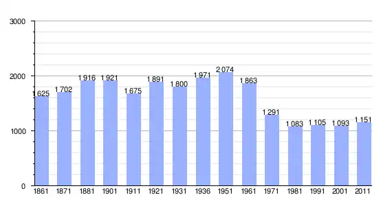 | Variação demográfica do município entre 1861 e 2011[3] |
