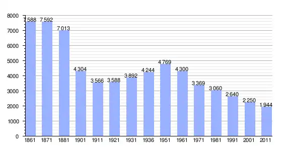 | Variação demográfica do município entre 1861 e 2011[3] |