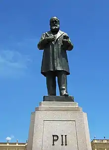 José Murilo de Carvalho escreveu que a nação estava consolidada na época que Pedro foi deposto, o comércio de escravos tinha sido abolido e as fundações do sistema representativo tinham sido estabelecidas devido a eleições ininterruptas e a ampla liberdade de imprensa. Ele comentou que "pela longevidade de seu governo e as transformações que ocorreram ao longo de seu curso, nenhum outro Chefe de Estado marcou mais profundamente a história da nação".[43][nota 7] O historiador Pedro Karp Vasquez disse que o imperador conduziu "o país para um período de estabilidade e prosperidade depois de 1850. Enormemente interessado em tudo que estava relacionado com descobertas científicas, Dom Pedro II procurou modernizar a nação, em muitas instâncias antecipando iniciativas nas nações europeias".[44][nota 8] Por fim, outro biógrafo brasileiro Renato Sêneca Fleury observou que "na História do Brasil, as páginas dedicadas a Pedro II atribuem-lhe completa justiça, elevando suas grandezas morais, seu imenso patriotismo e o grande bem-estar que ele concedeu ao Brasil", e também que o imperador "tornou-se imortal no coração do povo brasileiro. Existem escolas, bibliotecas, hospitais, sociedades culturais, teatros, ruas, praças, aqui, lá e por todo o Brasil que receberam o nome de Pedro II".[45]