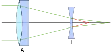 Teleconversores são variações das lentes barlow que foram adaptadas para uso fotográfico. Um teleconversor aumenta a distância focal efetiva da lente fotográfica à qual está conectado, tornando-o uma teleobjetiva . Uma lente teleobjetiva real usa uma configuração semelhante a uma lente Barlow para obter um comprimento de tubo mais curto para uma determinada distância focal.[4]